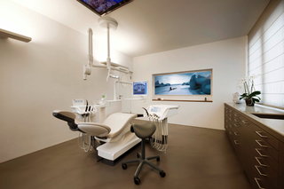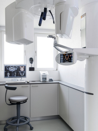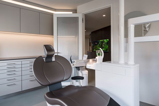 Unser Zahnarzt-Stuhl gewährleistet Ihnen ein komfortables Liegen. Die Rückenlehne mit Lordosefunktion passt sich individuell Ihrer Wirbelsäule an. Gerade bei längeren Behandlungen sorgt das Klimapolster sowie die Rückenlehne mit Massagefunktion für zusätzliche Entspannung. An besonders heissen Tagen sorgt die Klimaanlage für eine ausgewogene Temperatur in unserer Praxis.